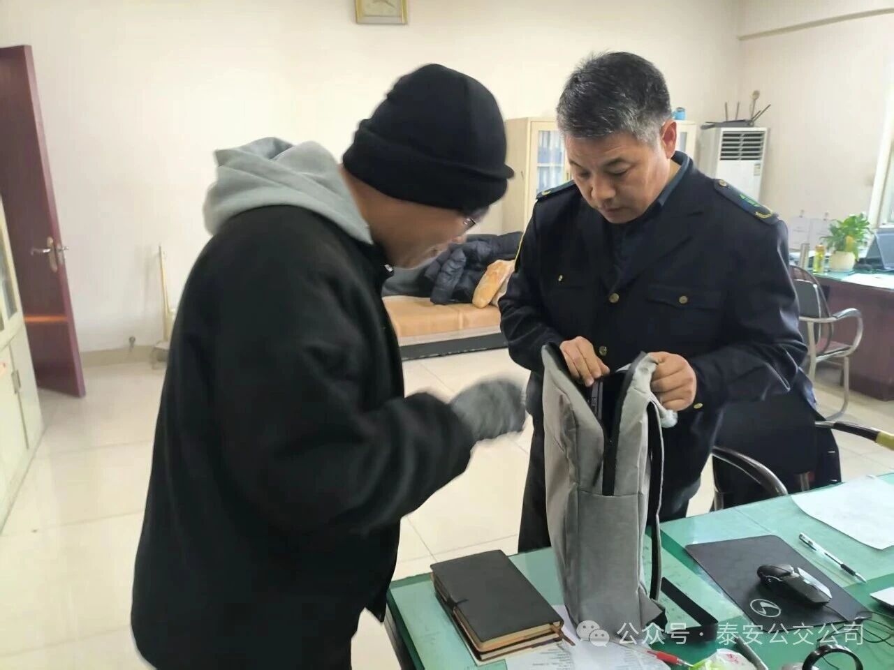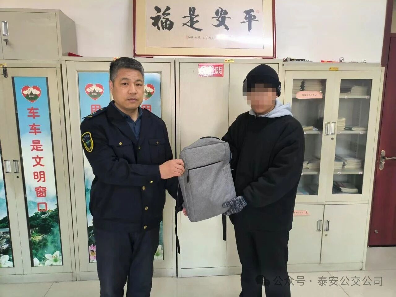 據(jù)了解,齊同學(xué)從濟(jì)南來(lái)泰安上學(xué),當(dāng)天晚上從泰山火車(chē)站乘坐39路公交車(chē)前往學(xué)校。乘車(chē)途中,齊同學(xué)因看手機(jī),下車(chē)時(shí)不慎將裝有筆記本電腦和現(xiàn)金的背包遺落在車(chē)廂內(nèi),直到抵達(dá)學(xué)校后才發(fā)現(xiàn)背包丟失。心急如焚的齊同學(xué)立刻返回下車(chē)的站點(diǎn)尋找,但公交車(chē)早已駛離;他又匆忙趕回乘車(chē)的泰山火車(chē)站公交樞紐站,依舊沒(méi)有看到剛才乘坐的那輛公交車(chē)的身影。情急之下,齊同學(xué)向樞紐站里的一位公交駕駛員詢(xún)問(wèn)了39路所屬分公司的聯(lián)系電話,隨即撥通電話向分公司工作人員求助。