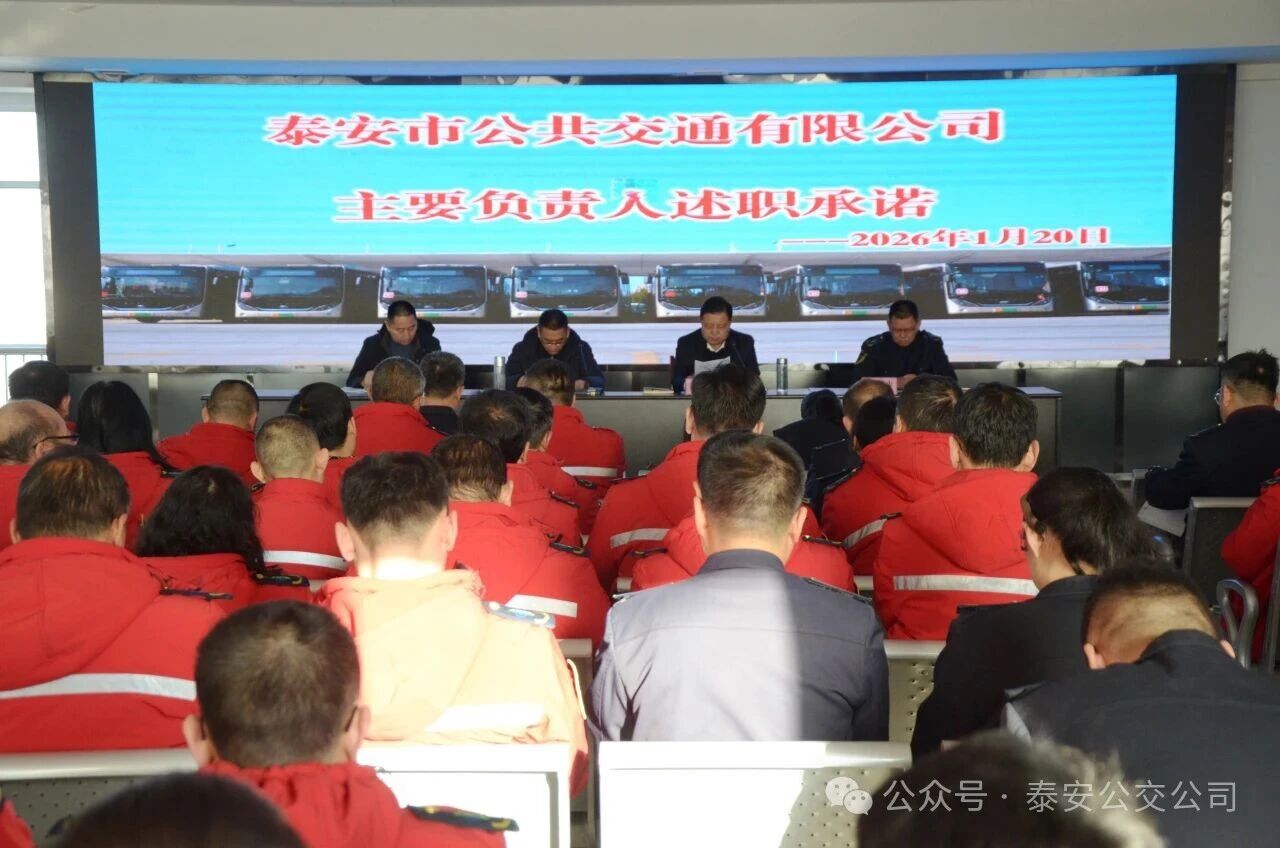 市交通運(yùn)輸局道路運(yùn)輸管理服務(wù)中心黨委委員、紀(jì)委書記宋雅冬,對本次述職承諾情況進(jìn)行了全面的點(diǎn)評,肯定了公交公司在安全生產(chǎn)工作中取得的成效,同時對2026年安全工作提出了要求和建議。他指出,泰安公交通過一系列扎實(shí)舉措,實(shí)現(xiàn)事故起數(shù)、費(fèi)用的明顯下降,安全成效顯著,是落實(shí)企業(yè)安全生產(chǎn)主體責(zé)任的生動實(shí)踐。結(jié)合歲末年初安全生產(chǎn)形勢,宋雅冬提出四項(xiàng)要求,一是提高政治站位,扎實(shí)做好春運(yùn)及兩會期間安全保障,聚焦車輛維護(hù)、客流疏導(dǎo)等關(guān)鍵環(huán)節(jié),嚴(yán)守安全操作規(guī)范,杜絕違章行為;二是深化治本攻堅(jiān)三年行動,緊盯2026年收官目標(biāo),狠抓全員安全培訓(xùn)、車輛本質(zhì)安全提升和重大隱患動態(tài)清零;三是抓實(shí)冬季安全防范,落實(shí)防凍防滑、應(yīng)急值守等措施,強(qiáng)化“晨會”“有獎舉報”等制度落地;四是提前部署春節(jié)前隱患排查和惡劣天氣預(yù)警防范,確保安全運(yùn)營。會上,公司領(lǐng)導(dǎo)班子成員簽訂了《2026年安全生產(chǎn)責(zé)任書》,壓實(shí)安全承諾,進(jìn)一步凝聚“人人有責(zé)、各負(fù)其責(zé)、失職追責(zé)”的安全共識。本次述職承諾,既是對過往工作的全面復(fù)盤,更是對未來公司安全發(fā)展的鄭重承諾。泰安公交將以本次會議為契機(jī),壓實(shí)責(zé)任、補(bǔ)齊短板、創(chuàng)新突破,持續(xù)提升安全生產(chǎn)管理水平,為泰安公交高質(zhì)量發(fā)展筑牢安全根基。